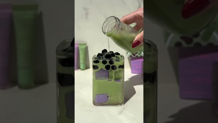 Satsifying ASMR Matcha & Taro Ice Cubes Turned In To Bubble Tea 🍵🪻 #drink